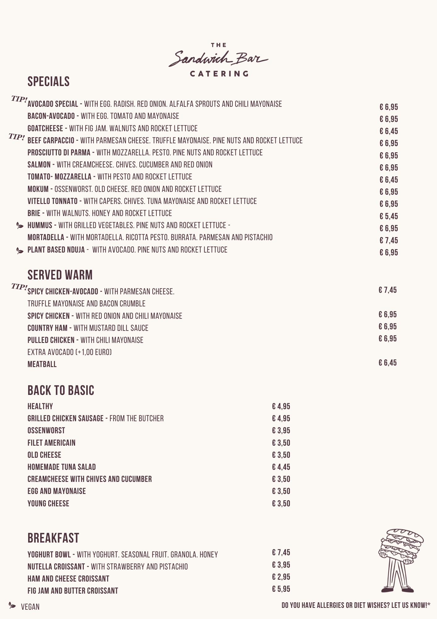 If you have any questions regarding our catering service please email us at orders@thesandwichbar.nl or call +31 6 15657447
